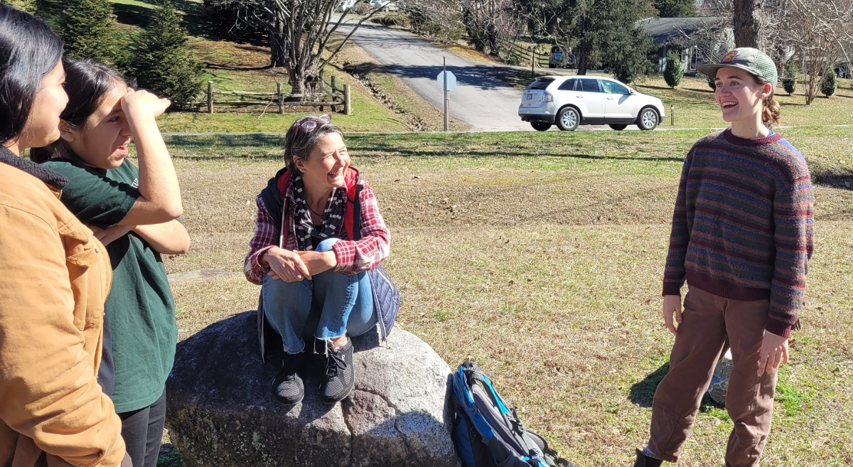 Kate (right) chatting with volunteers during our Valentine’s Day 2025 invasive plant workday.