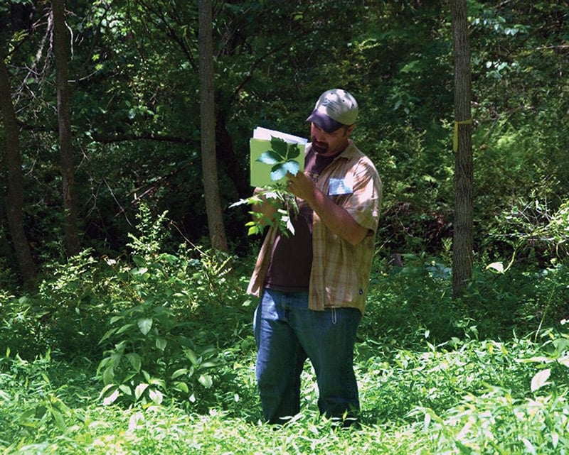 MountainTrue Western Region program coordinator Tony Ward evaluates native and invasive plants while developing a restoration plan.