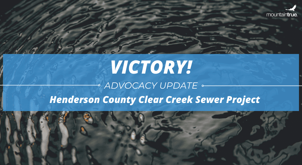 Earlier this year, you joined us in speaking out for clean water and sustainable development by submitting comments and attending public meetings on Henderson County’s Clear Creek Sewer Project. With this project, County Commissioners proposed constructing a new sewer line extending to Edneyville and sought permits for a new wastewater treatment plant that would discharge into Clear Creek — a stream that has already been listed as impaired by the state due to ongoing pollution problems.
