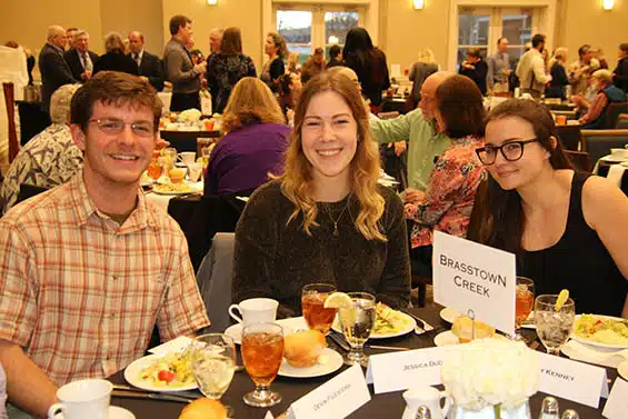 Photo caption: Young Harris College students, Devin Filicicchia, Jessica Dudt, and Bethany Kenney pause for a photo during the 11th Annual Watershed Gala.