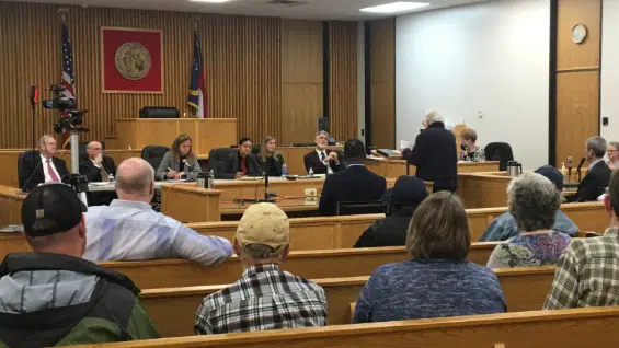 Residents speak out against Duke Energy’s latest rate hike proposal at the NC Utility Commission’s hearing in Franklin on Jan. 15