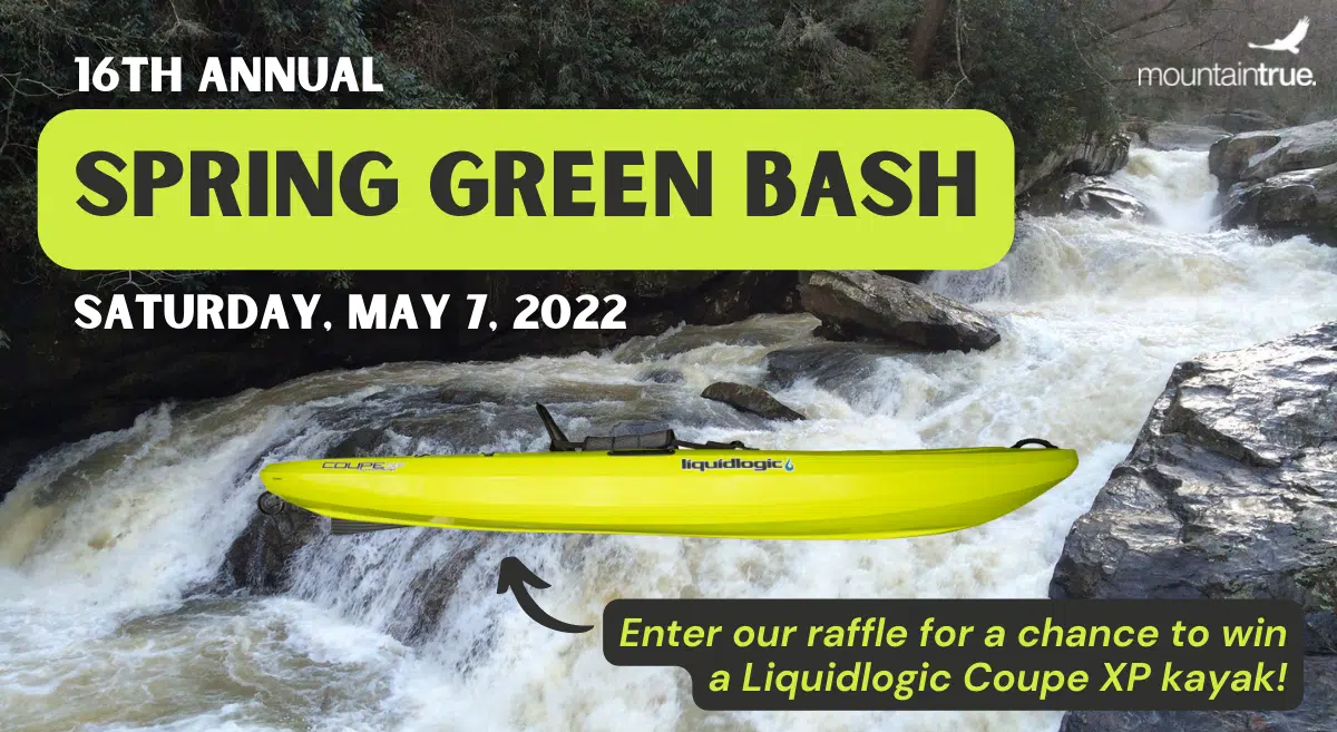 The whole Green River community is invited to the Spring Green Bash block party at Green River Adventures in downtown Saluda, NC. We’ll enjoy great beer from Oskar Blues Brewing and music by Aaron Burdett. We’ll also announce the winner of the charity raffle for a Liquidlogic Coupe XP kayak, a whitewater kayak valued at $1,000! Proceeds from the raffle benefit MountainTrue’s Green Riverkeeper – the protector and defender of the Green River Watershed.