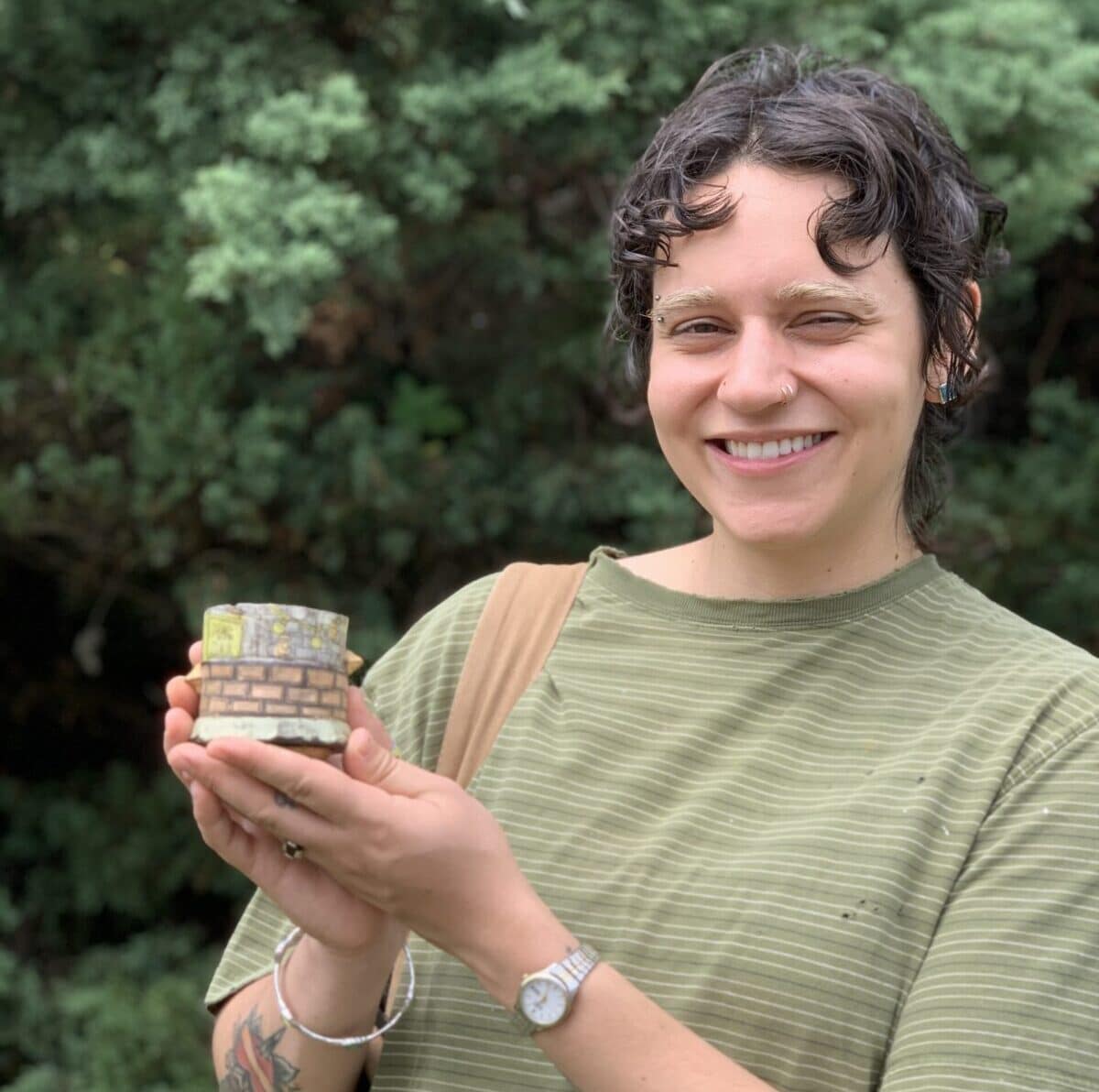Ten months after Helene, with the help of volunteers from City Year, Truist and N.C. Department of Environmental Quality Secretary Reid Wilson, MountainTrue recovered several personal items along the banks of the Swannanoa River. Among them, a small handmade ceramic cup was found completely intact. It featured a cityscape design with intricate details, and an artist’s signature — Autumn McCay, a Cincinatti, Ohio-based ceramic artist. We reached out to Autumn and found that she created the small “sipper” cup for one friend in particular — Max. The cityscapes featured on Autumn’s ceramic pieces were reflections of the Louisville, Kentucky skyline where they both once lived. The cup detailed some of their favorite Louisville hangouts — an incredibly personal expression of their friendship.