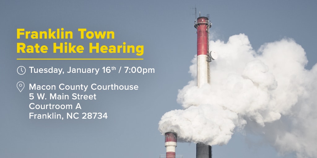 The NC Utilities Commission hearing will be held Tuesday, January 16 at 7 pm at the Macon County Courthouse located at 5 W. Main St. Courtroom A, Franklin, NC, 28734. Those who plan to speak should arrive at 6:30 pm.