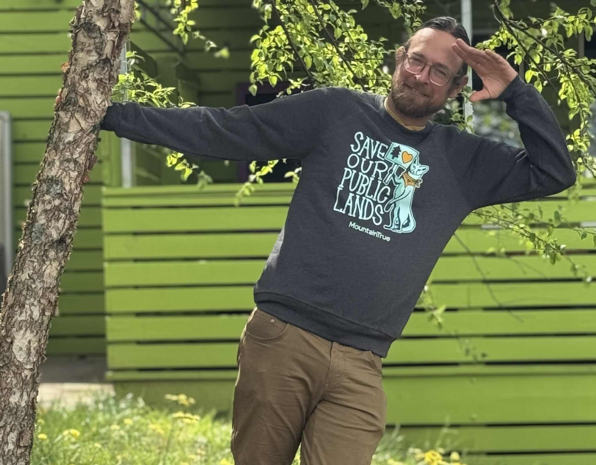 Proceeds from our “Save Our Public Lands” sweatshirt help fund the work of MountainTrue, including our Resilient Forest program.